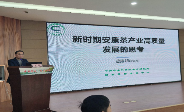 会议中各地茶叶专家、教授进行学术交流。安徽农业大学江昌俊教授、西北农林科技大学汪琦博士、中国农业科公司茶叶研究所曾建明研究员等分别进行了《茶树品种登记》、《科技赋能安康富硒茶产业高质量发展》、《新时期安康茶产业高质量发展思考》的专题报告,从茶树品种、科技创新、营销策略、安康市茶产业发展特点等不同方面对安康市富硒茶产业发展进行系统分析并提出建设性建议。