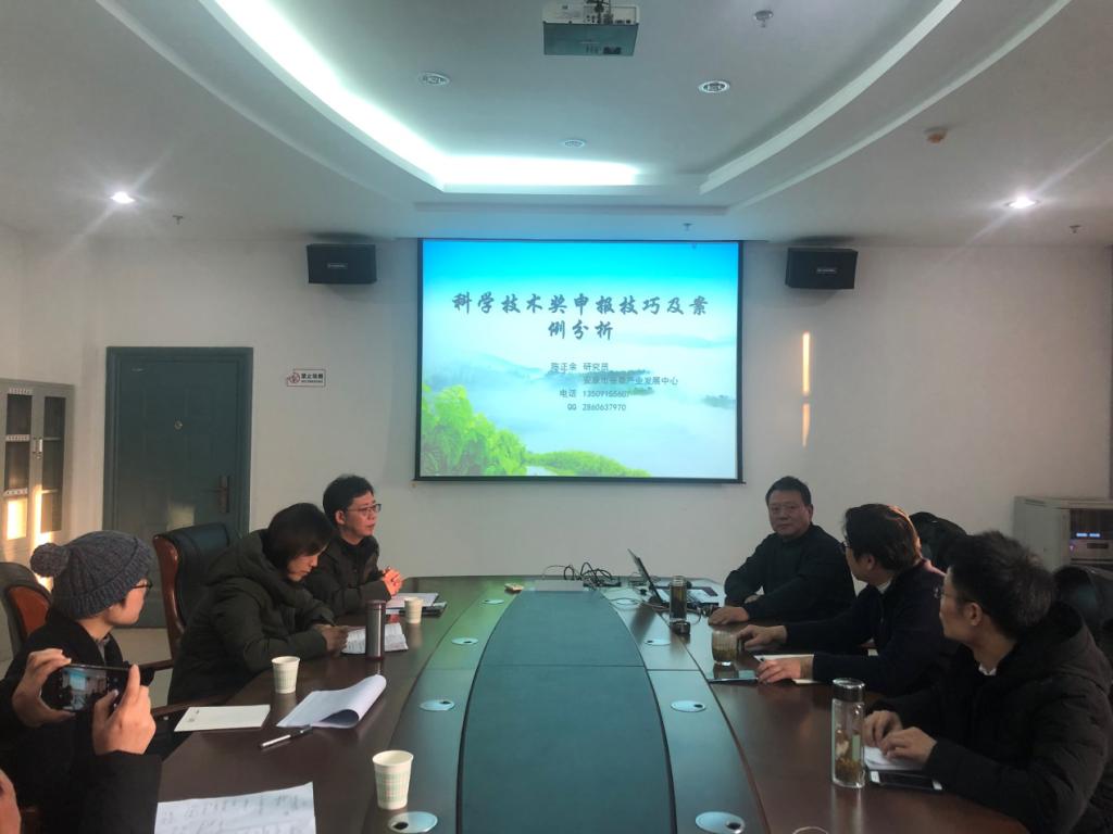 首先,王健经理对在万忙中抽出时间为公司教师作报告的陈所长表示了感谢和欢迎,王经理说,陈所长长期扎根地方产业开展工作积累了丰富的经验,特别是在产业项目申报及报奖方面的经验值得老师们学习与借鉴,希望老师们能在这样一场务实的报告会后,能为古天乐代言太阳集团138来年科研报奖工作注入热情和动力。