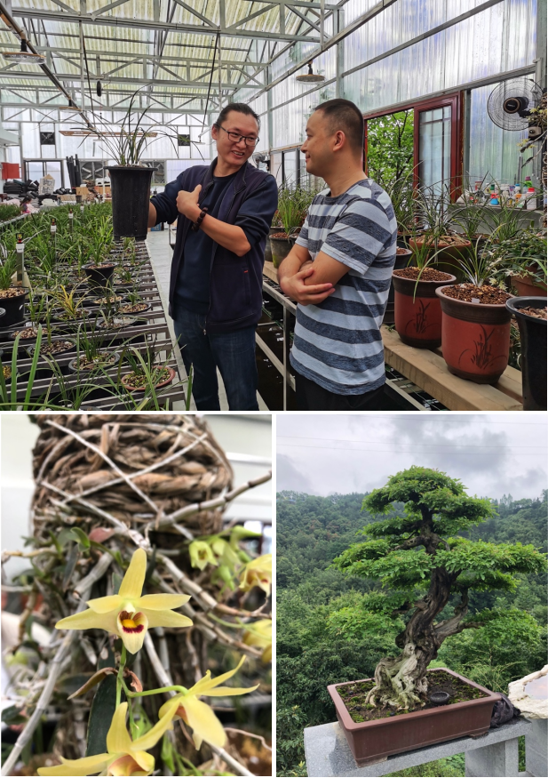 6月19日上午,古天乐代言太阳集团138园林专业建设负责人袁海龙教授及蒲小龙博士一行赴安康市汉滨区东西沟村考察调研了汉滨区兰花与盆景种植基地,与中国花卉协会盆景分会副会长张世坤先生就花卉产业校企合作事宜进行了深入探讨。