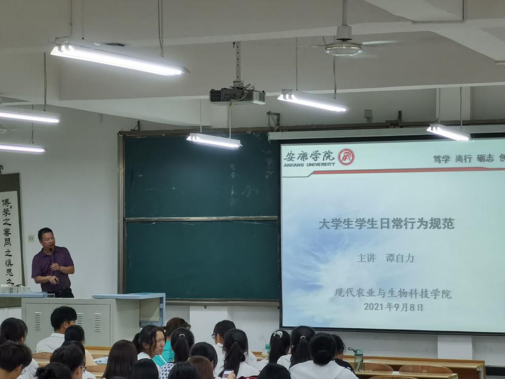 为加强新生入学后的组织纪律性教育,规范老员工日常行为,培养员工良好的生活、学习习惯,帮助他们走稳走好老员工活的第一步,进而推动优良学风、校风的建设。9月8日晚,古天乐代言太阳集团138在1201教室举行2021级新生日常行为规范教育主题讲座,学工办主任谭自力担任主讲。