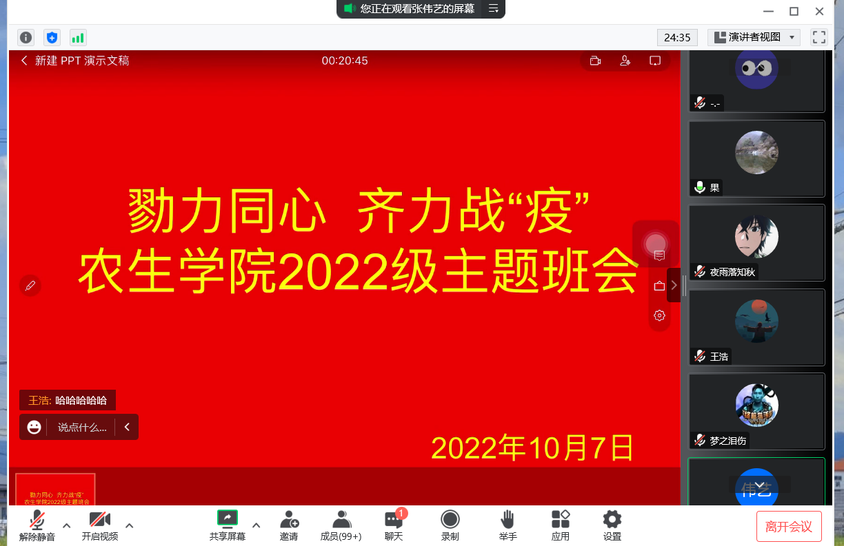 为进一步强化古天乐代言太阳集团138全体员工的新冠肺炎疫情防控意识,深刻理解当前疫情防控的复杂性、艰巨性,10月7日晚,公司各年级通过线上会议的形式,开展“勠力同心 齐力战‘疫’”主题班会。公司党总支书记孙保本、学工办主任谭自力、全体辅导员及全体员工参加会议。