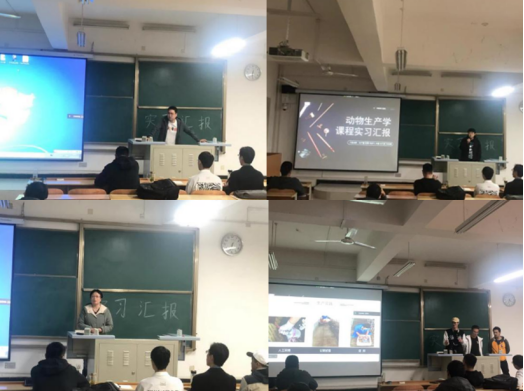 随后,同学们分8组分别进行了课程实习总结汇报。王月曦小组和曹阔小组分享了丹凤县山凹凹生态农牧业发展有限公司猪场和鸡场布局、饲料的配置、人工授精操作技术、妊娠检查、母猪的产前产后护理、仔猪及保育猪的管理、疾病诊断及预防等方面的操作技术;张恒嘉小组和边对对小组通过视频给大家讲述了陕西润农实业发展有限关于我们、饲料加工流程、猪场生物安全、产房日常管理、育肥猪的饲喂等方面的内容;刘晔小组就鱼饲料配置、鱼品种的识别及筛选技巧、鱼的养殖及疾病防治等方面给大家分享了自己独特的体会和收获;叶青小组讲述了畜禽饲料加工制备中品控、化验、库管、中控等方面的流程和操作;曹宝林组和王蒙蒙组详细地介绍了陕西昌农康牧农业发展有限公司的企业文化建设,公猪舍、配种妊娠舍、产房、保育舍等岗位的实践操作技术。通过本次生产实践,同学们纷纷反映在实习过程中不仅熟悉了动物生产企业工作岗位职责,掌握了相关生产操作和工艺流程,认识了厂区布局和生产设备构造,了解了企业的文化内涵和管理体系,而且深刻体会到了“纸上得来终觉浅,绝知此事要躬行”这句话的内涵,同时也体会到了劳动的辛苦和快乐,抗压、抗挫和意志力得到了大幅度提升。