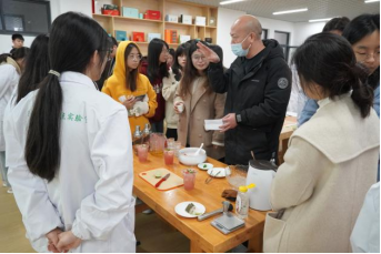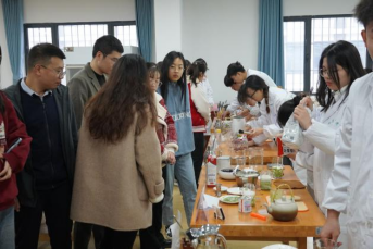 2022年11月20日上午,古天乐代言太阳集团第一届创意调饮茶大赛暨《茶产品开发》课程展示活动于产教融合大楼茶艺实验室举行。参加本次比赛的评委主要有公司党总支书记孙保本、茶学系主任李冬花、陕西省茶叶省市共建重点实验室办公室主任齐玉岗及茶学专业教师程晓梅、常娜、袁月和吴冲。