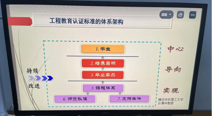 本次培训围绕“专业建设持续改进路径”、“毕业要求指标点分解与课程支撑关系化”、“面向产出的内部评价机制”和“自评报告各章节专家关注重点与撰写策略”四个方面开展。