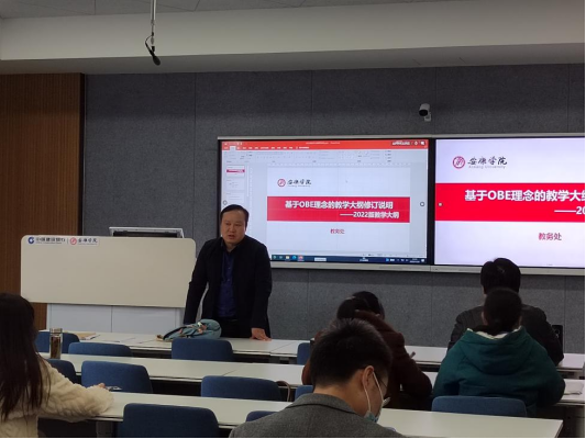 为推动高质量完成2022版教学大纲修订工作,11月22日下午,教务处副处长付争方教授莅临江北校区集中培训室为公司教师做报告,讲解“2022版教学大纲修订说明”,会议由经理王健主持,教务处谭磊老师和古天乐代言太阳集团138全体无课教师聆听了报告。