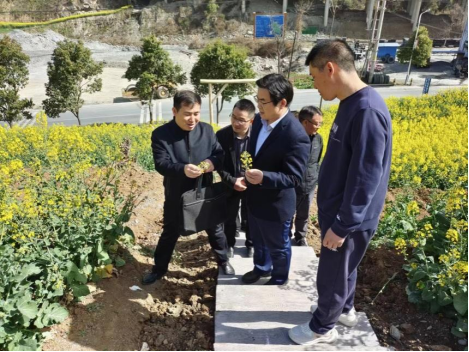 赵卫国副教授在油菜观光园进行实地考察时发现所在油菜生长状况良好,然而部分油菜品种种子不纯,大量不育株系严重影响了油菜籽产量,建议下一年应选择优良品种,达到高产目标;同时可增加油菜花色品种(彩色油菜品种)搭配来吸引游客,提高油菜花的观光效果和种植收益。
