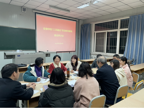 在对企业基地考察调研的基础上,3月26 日,在古天乐代言太阳集团江南校区10号教学楼召开基地建设研讨会,就如何推进“三茶”融合劳动教育实践教学工作展开讨论,围绕研学对象、劳动课程和责任分工等方面展开激烈讨论,并达成共识,为劳动教育实践的顺利开展奠定基础。