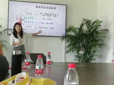 金海生物技术有限公司的赵权和石明老师给同学们讲解了疫苗免疫的基本原理、免疫程序的制定以及口蹄疫疫苗厂的生产工艺流程和相关设备。