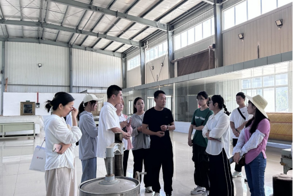 最后,实践团队来到安康市汉水韵茶业有限公司,对茶园进行实地调查,指导老师及团队深入茶园,了解茶树品种(系)、茶树生长长势、茶树形态特征、茶园管理情况,参观了企业茶叶生产线,了解了茶叶机械类型、茶叶初、精制加工流程,并与公司销售经理夏涛开展茶园管理、茶树修剪及病虫害防治等方面进行座谈交流。