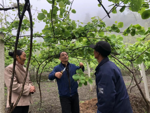 沈大刚副教授与赵站长深入寺姑村猕猴桃园,详细查看了园内猕猴桃春季枝条发芽情况。随后沈大刚老师向当地果农和园区业主详细讲解了春季猕猴桃树抹芽和疏蕾的方法及注意事项,并实时示范操作要领。