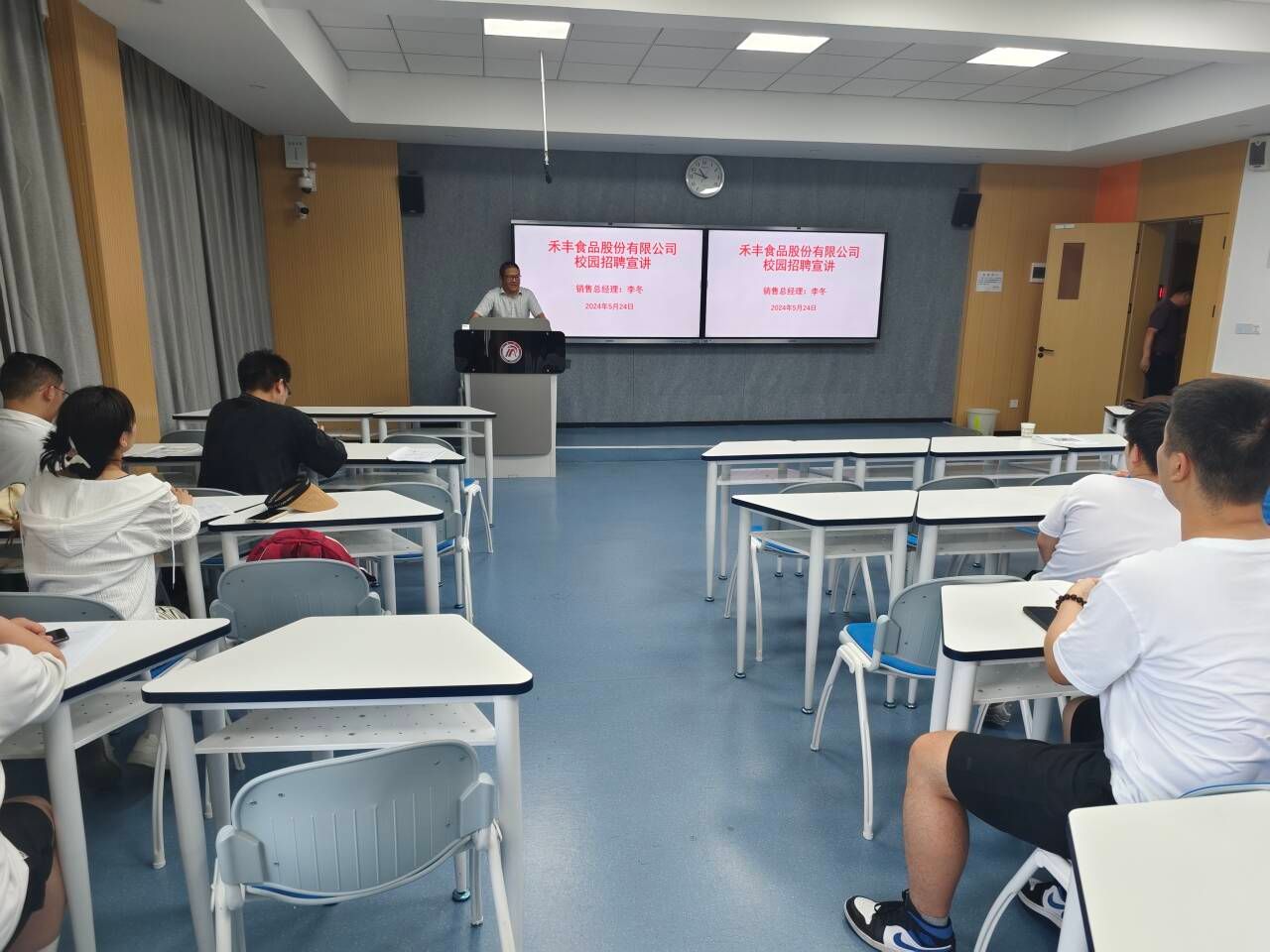 会上,禾丰股份销售总经理李冬、农科化肥副总经理牛建东、恒田生物运营部经理李耀战分别介绍了公司基本情况、生产经营、岗位需求、薪酬待遇、未来发展等情况,就同学们关注的问题进行了现场解答,通过宣讲,加深了同学们对公司的深入了解,最终有11人与公司达成就业意向。