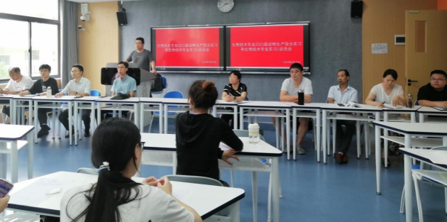 为确保动物生产综合实习和生物技术专业实习1顺利开展,引导同学们做好实习前的各项准备,生物系于6月20日在1208教室召开动物生产综合实习和专业实习1动员大会。会议由生物系主任王臣荣主持,教学副经理杨芳、2021级辅导员金清民、专业教师赵鸿远、陈苏维、王中兴、陈玲、周天骄、许连光、陈晓帅及2021级生物技术专业全体员工参加了本次动员会。