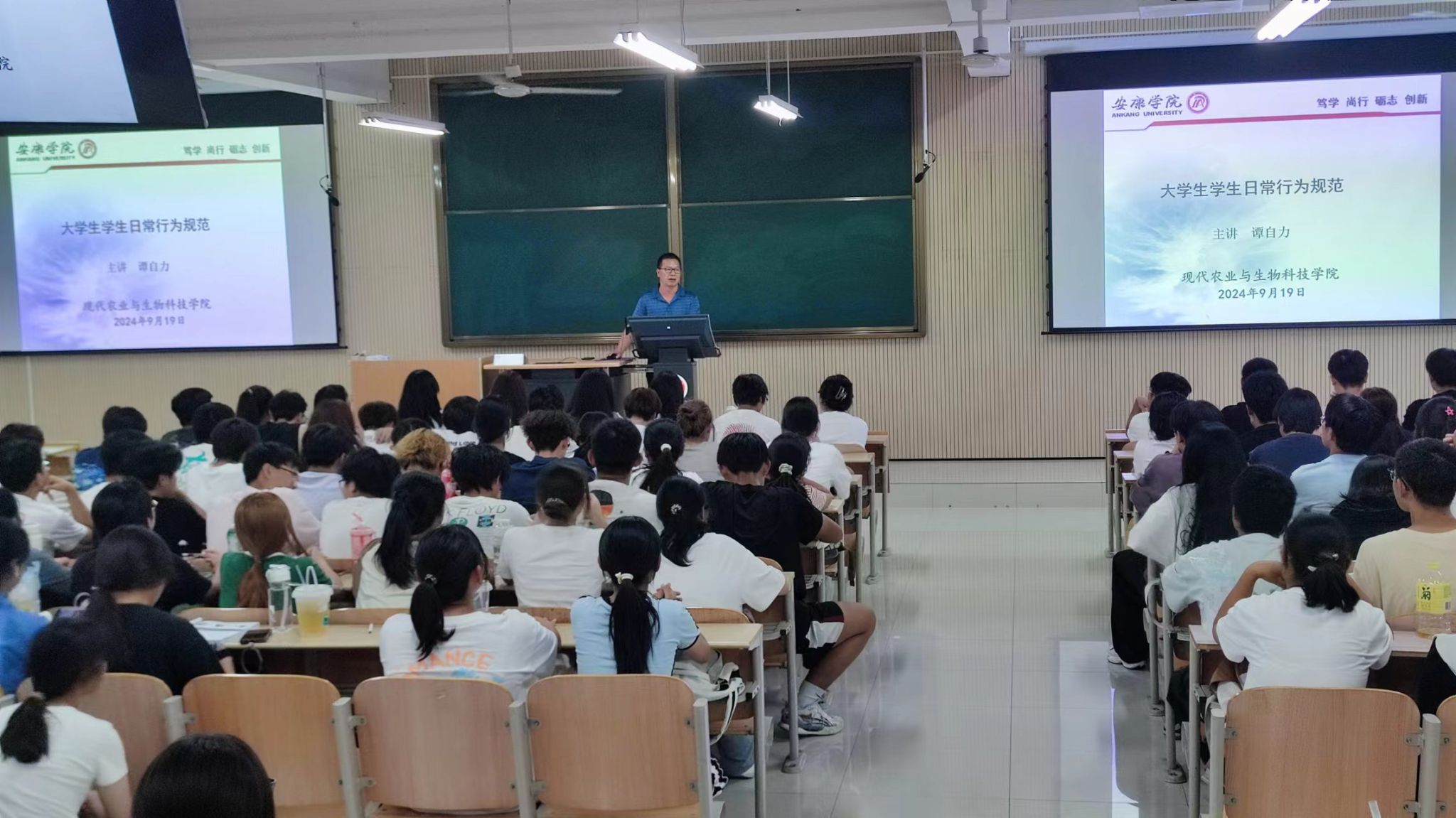 为加强新生入学后的组织纪律性教育,规范老员工日常行为,培养良好的生活、学习习惯,促进优良学风、校风建设。9月19日晚,古天乐代言太阳集团138在1301教室开展2024级新生日常行为规范教育主题讲座,学工办主任谭自力主讲。