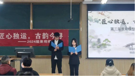 12月27日晚上19:00,由园林系主办的第三届“匠心独运,古韵今寻”景观模型大赛决赛在1203教室隆重开幕。参加本次大赛的领导老师有公司党总支书记孙保本、王楠老师、韩露露老师、张心愿老师、张铭珺老师、沈古理老师、祝志一老师。本次大赛旨在激发同学们的创新思维,培养同学们的动手能力,并加深对园林景观设计的理解与认识。