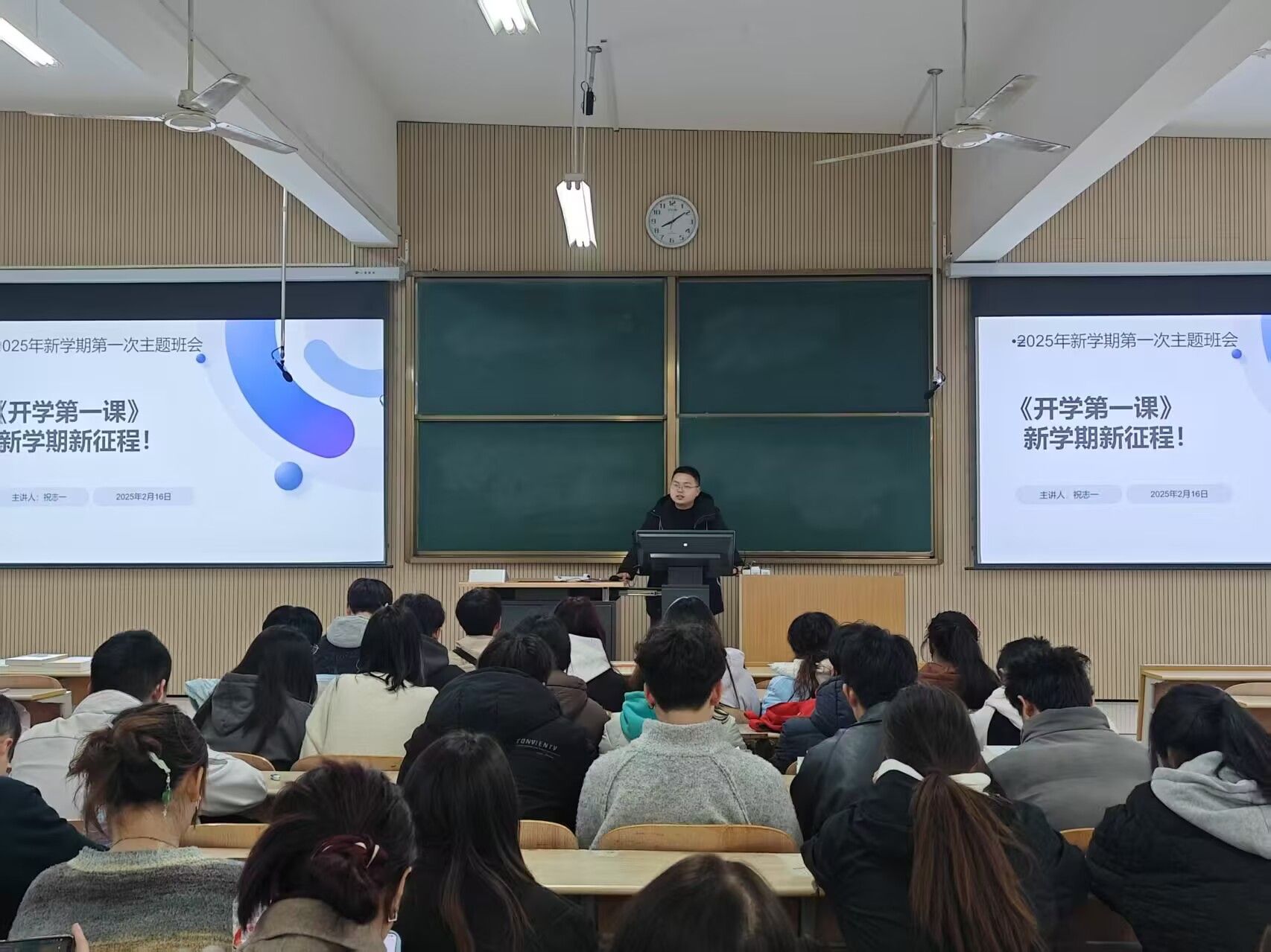 总结学业成果,锚定奋斗方向。班会上,各辅导员对上学期期末成绩进行了分析,通报了学业成绩排名前10的员工。充分肯定了同学们在学业、科研和实践活动中取得的优异成绩,并对新学期的班级建设提出了明确目标。辅导员鼓励同学们结合本专业,本领域的发展趋势,制定个人学业规划,树立科研创新意识,积极参与学科竞赛和科研项目,将理论与实践相结合,为未来的职业发展夯实基础。